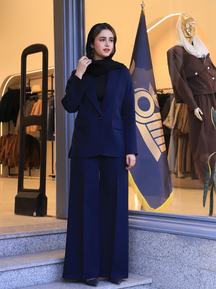 مانتو | مدل کت و شلوار اداری کد 10049 – سرمه ای.