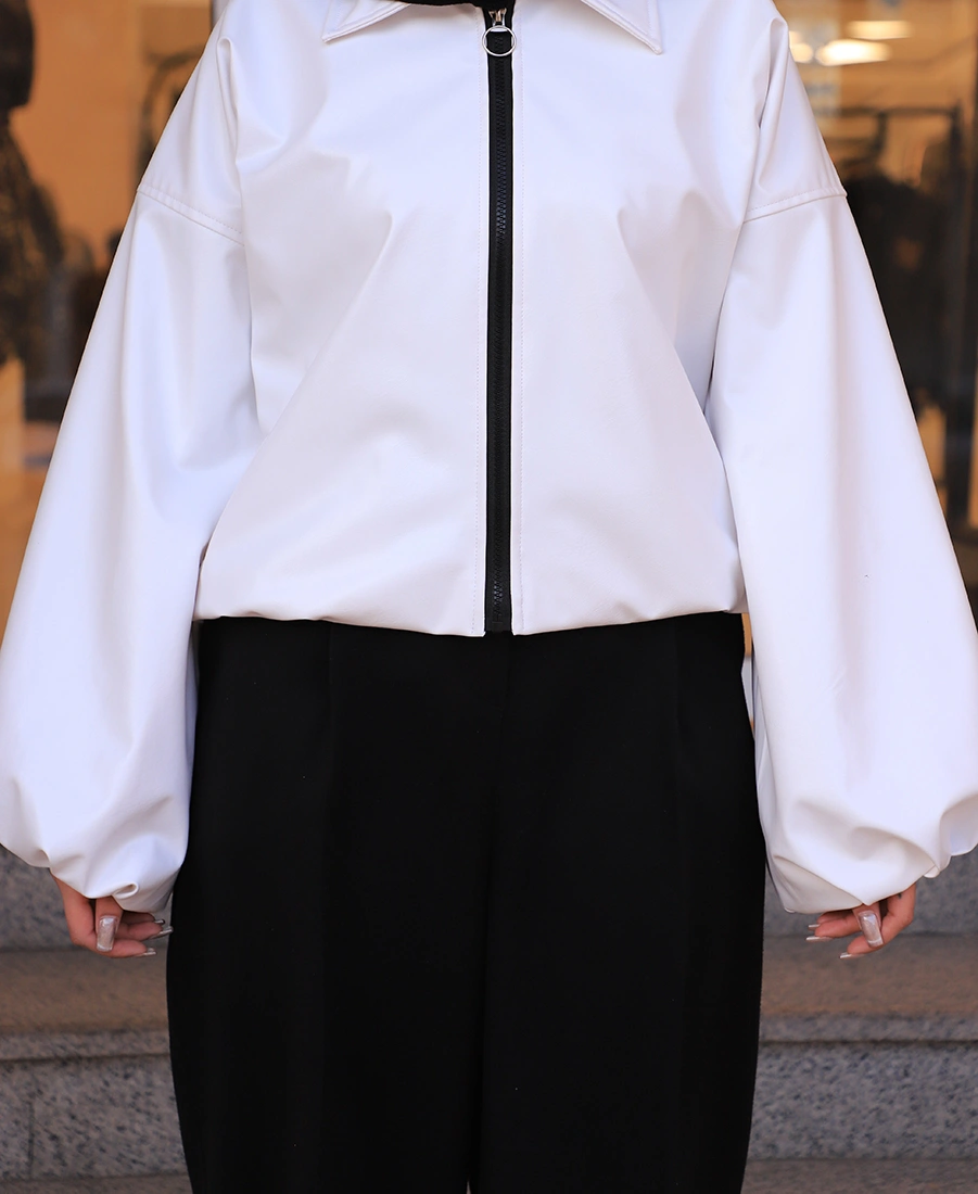 مانتو | مدل بامبر چرم کد 11374 – سفید