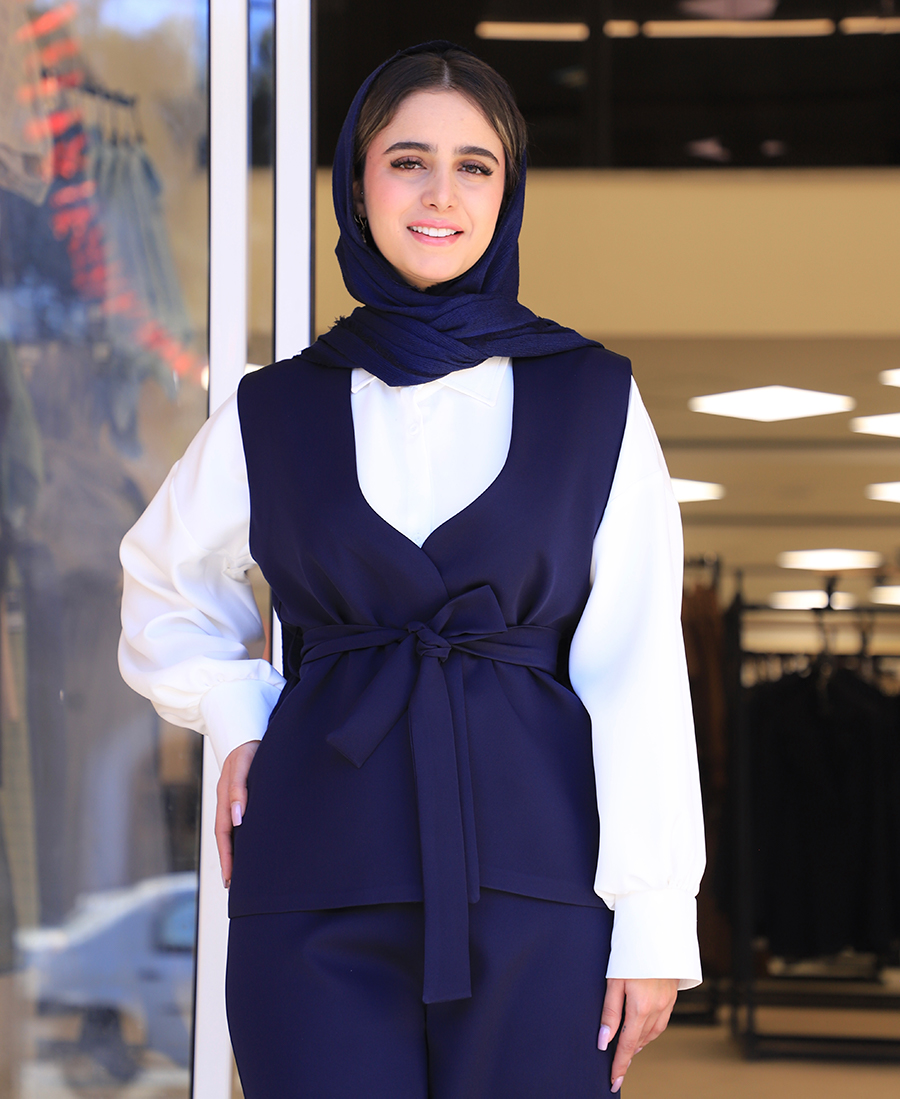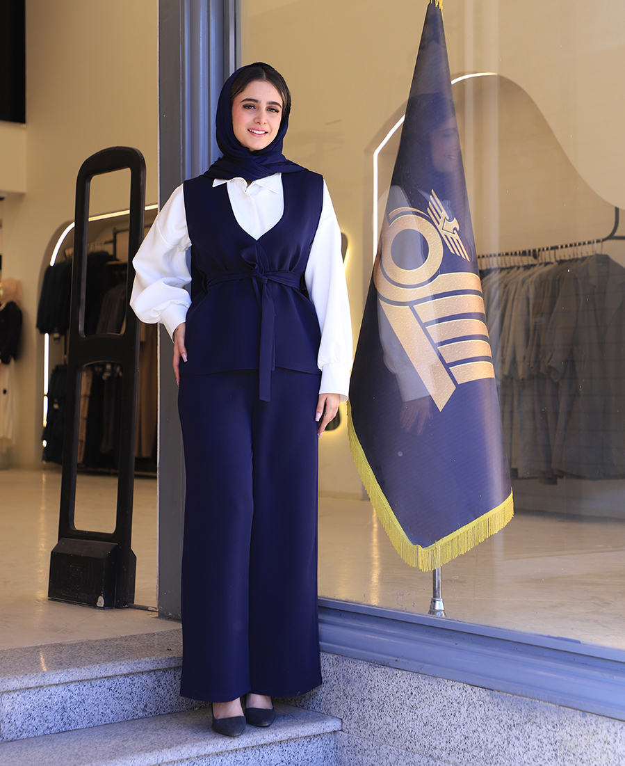 مانتو | مدل ست سه تیکه آتریسا کد 11546 – سرمه ای