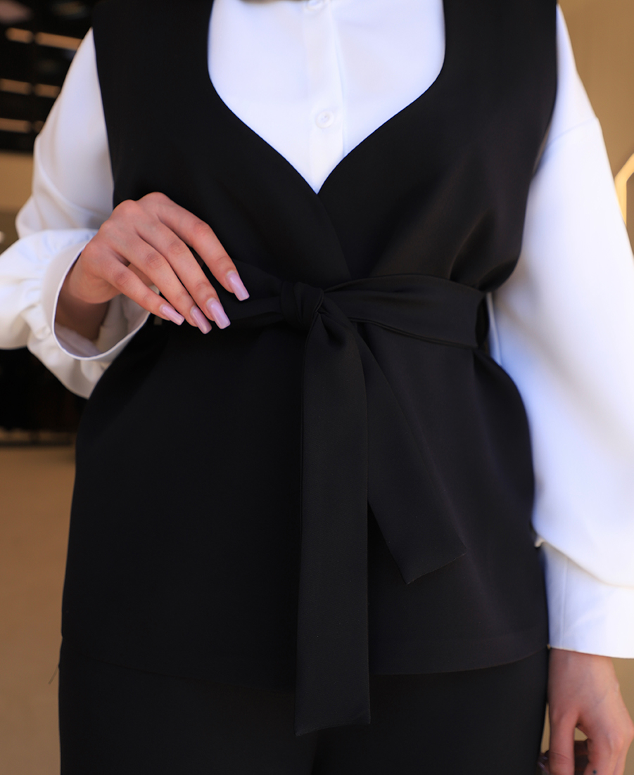 مانتو | مدل ست سه تیکه آتریسا کد 11546 – مشکی