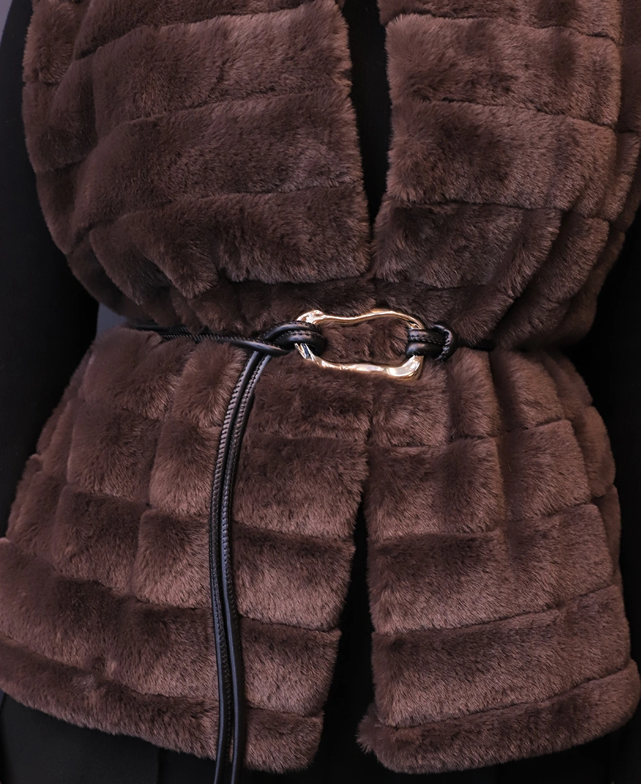 مانتو | مدل وست خز آستردار کد 11354 – قهوه ای