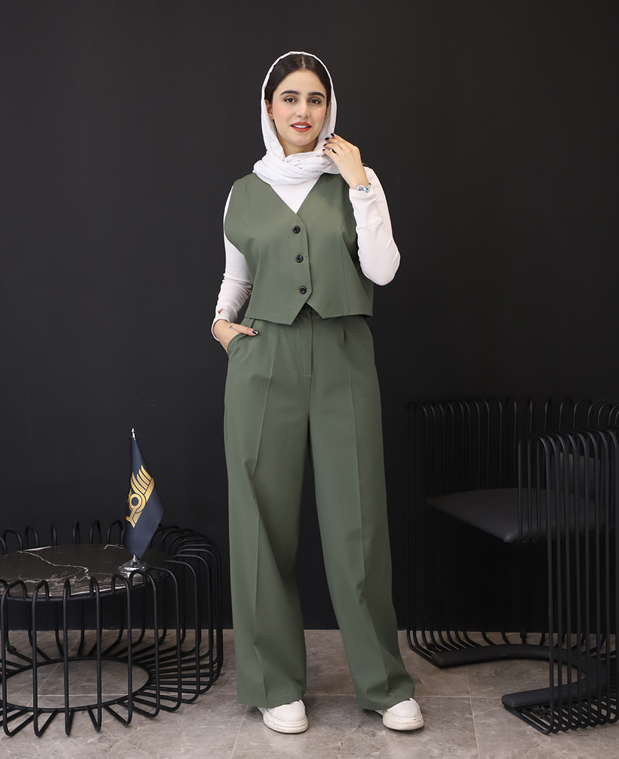 مانتو | مدل ژیله و شلوار دیپلمات ساده کد 10273 – سبز